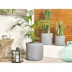 Beliani Plantenbak Voor Buiten ZAKROS – Grijs Klei-vezelmengsel