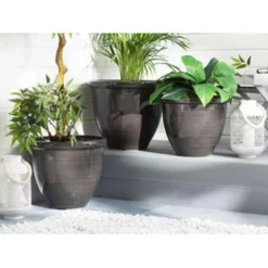 Beliani Plantenbak Voor Buiten SAMOS – Zwart Klei-vezelmengsel