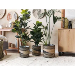 Bela Arte Plantenmand – Rotan – Zwart Met Naturel – 16 X 13 Cm