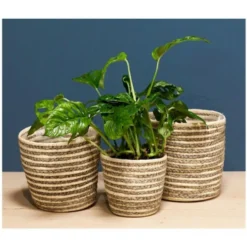 Bela Arte Plantenpot – Rotan – Naturel En Grijs – 20 X 18 Cm