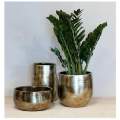 Bela Arte Bloempot/Plantenpot – Keramiek – Goud Glans – D12/H11 Cm