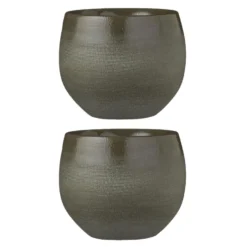 Mica Decorations Bloempot – Donkergroen – Keramiek – 16 X 13 Cm