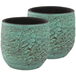 Steege Bloempot – Brons Met Groen – Keramiek – Antiek Look – 18 X 16 Cm