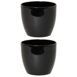 Floran Bloempot – Schaal – Zwart – Glanzend – Keramiek – 26 X 14 Cm