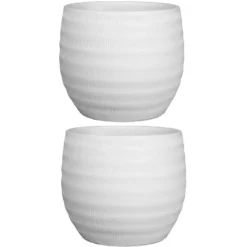 Floran Bloempot – Wit – Mat – Relief – Keramiek – 17 X 14 Cm