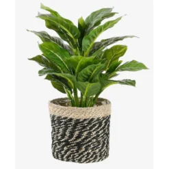 Mica Decorations Plantenmand – Naturel Met Zwart – Rotan – 12 X 12 Cm