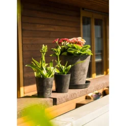 Ter Steege Plantenpot – Zwart – Kunststof En Steenpoeder – 25 X 12 Cm
