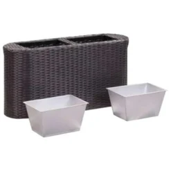 VidaXL Plantenbak Verhoogd Met 4 Potten 2 St Poly Rattan Bruin