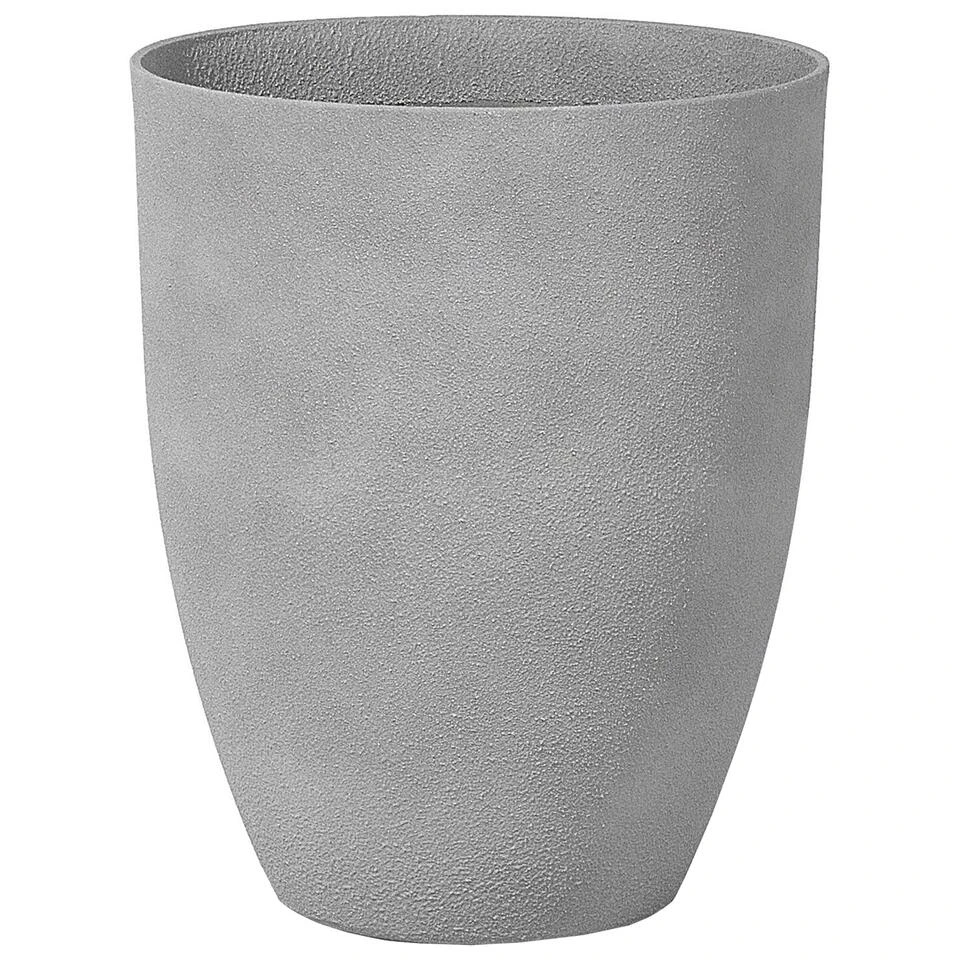Moderne, ronde plantenbak in grijs, hoogte 52 cm. Het fraaie ontwerp en de eenvoudige uitstraling van deze bloempot versterkt de groene pracht van planten nog beter. De elegante, witte pot oogt zowel individueel als in een groep erg decoratief. De bloempot is flexibel in gebruik, zowel binnens- als Wanneer de bloempot in de tuin of op het terras wordt gebruikt, kan de gemarkeerde plek gemakkelijk worden doorboord. Op elk moment kan dan overtollig water uit de pot stromen. Met een plug die bij de levering is inbegrepen, kan de opening indien nodig opnieuw worden gesloten. Het materiaal van de pot bestaat uit een mengsel van steen, polyresin en glasvezel en is daarom robuust, resistent, UV-bestendig, gemakkelijk in onderhoud en weerbestendig, zelfs bij zeer hoge of zeer lage temperaturen.