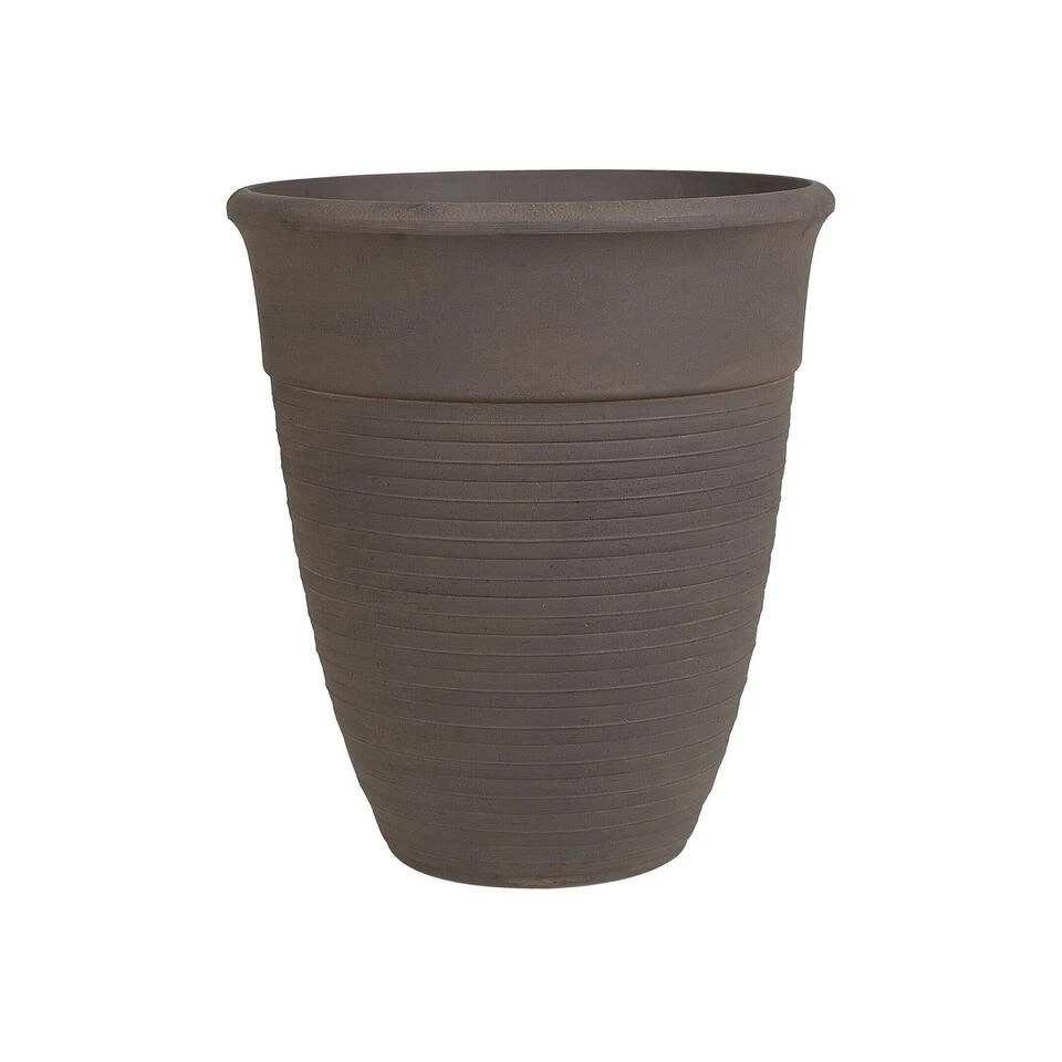 Bruine bloempot voor binnen en buiten. Deze bloempot komt overal tot zijn recht – of het nu voor de tuin, het terras of binnenshuis. De interessante structuur en de charmante kleur maken het de ideale metgezel voor jouw planten en bloemen.