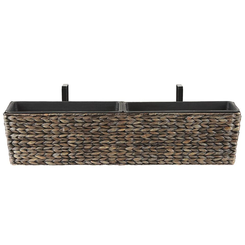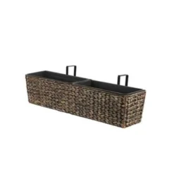 Rechthoekige balkonbak van waterhyacint voor binnen en buiten. Bevestig deze hangende plantenbak aan de buitenkant van je balkonreling om je zitplek te omringen met een zomeroase en te genieten van een groen uitzicht. De bakken zijn uitgerust met twee maatvaste inzetstukken voor beplanting, die de kuip beschermen tegen water en wortelgroei. De handgrepen kunnen indien nodig eenvoudig worden verwijderd, zodat je ze ook in de vensterbank kunt gebruiken. Omdat de bloembak is gemaakt van natuurlijke, gedroogde waterhyacint, is hij UV- en weerbestendig, bijzonder slijtvast, zeer duurzaam en ongedierte- en schimmelbestendig.