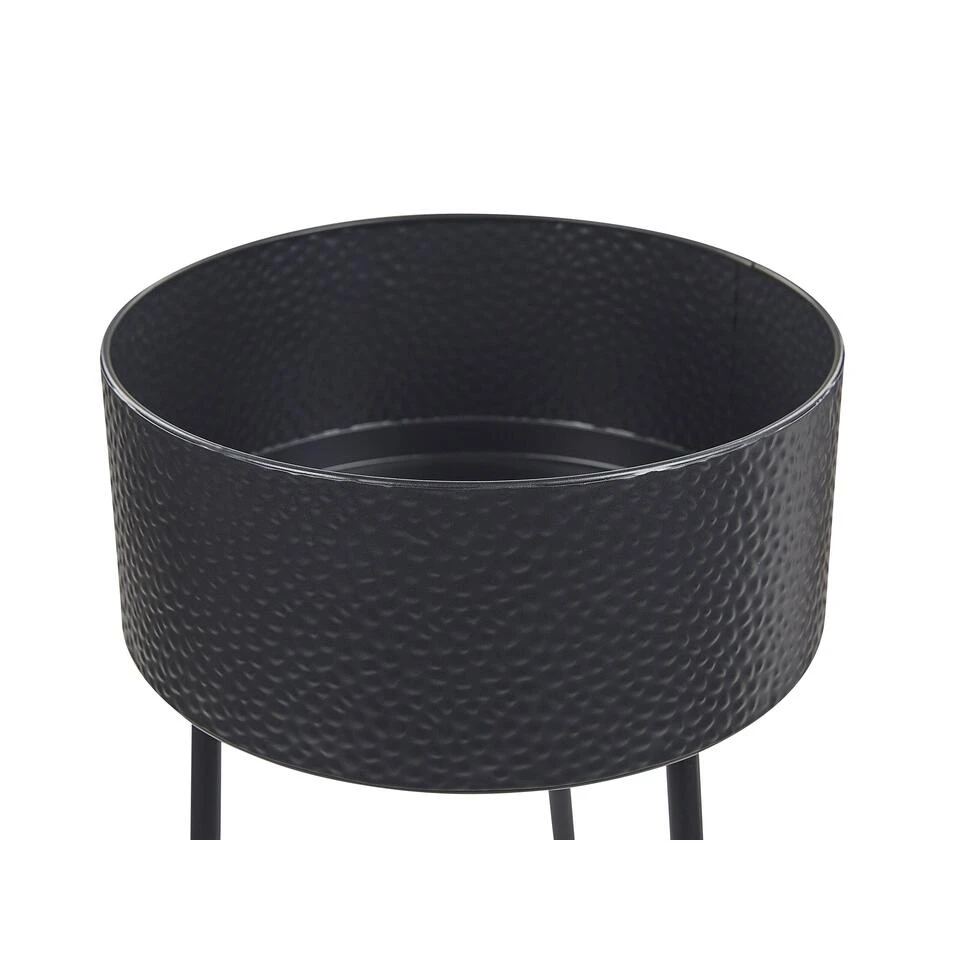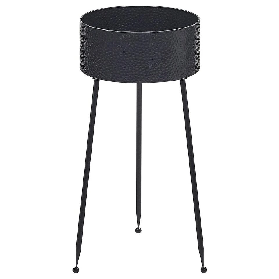 Decoratieve staande plantenbak. Maak je binnen- of buitenomgeving compleet door je planten in deze plantenstandaard te plaatsen en neer te zetten waar je maar wilt. De ijzeren driepootconstructie en zwarte afwerking met unieke structuur zorgen voor duurzaamheid en stabiliteit, maar geven je kamer toch een industrieel tintje. Je kunt de staande plantenbak gemakkelijk verplaatsen om je planten te verzorgen of je decor te herschikken.