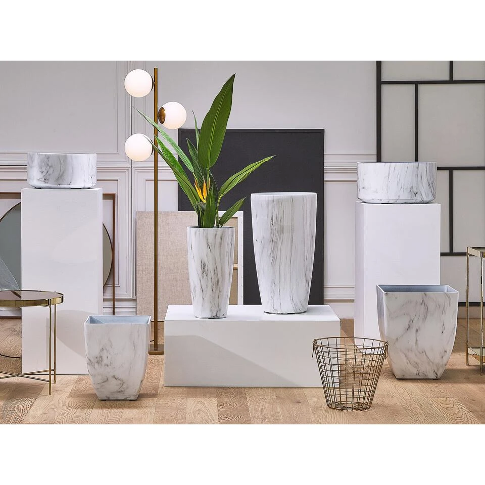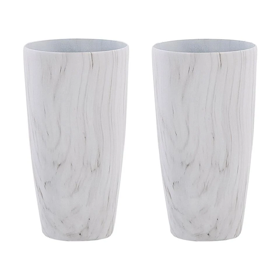 Moderne bloempot met glanzende marmerlook. Verfris je buitenruimtes met deze set van 2 hoge, ronde bloempotten. Gemaakt van duurzaam, UV-bestendig materiaal, zijn ze een perfecte toevoeging aan elke tuin, terras of balkon. Het oppervlak van de plantenbak lijkt op marmer, wat de uitstraling van het stuk verhoogt en een moderne, elegante sfeer toevoegt aan elke ruimte waarin ze worden geplaatst.