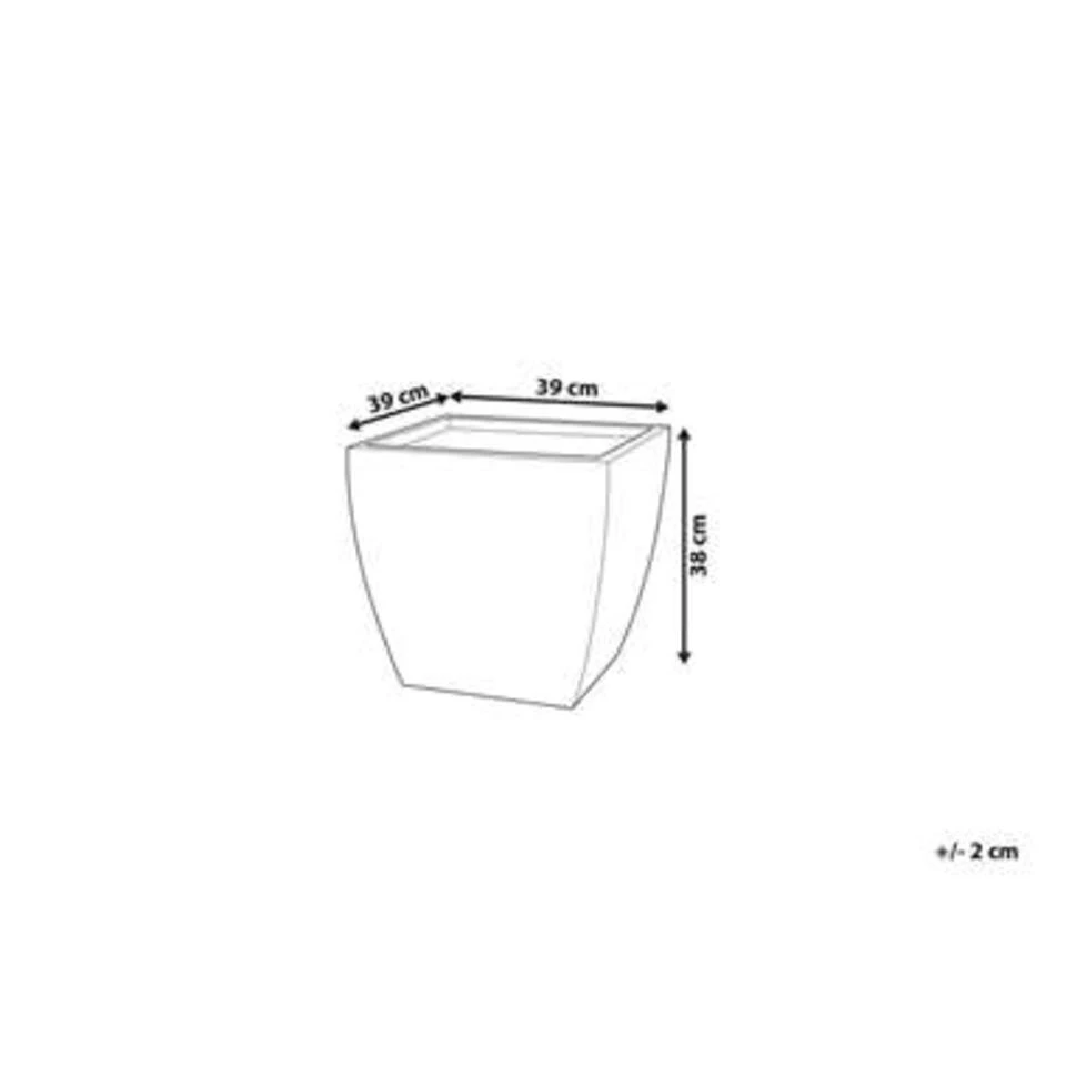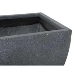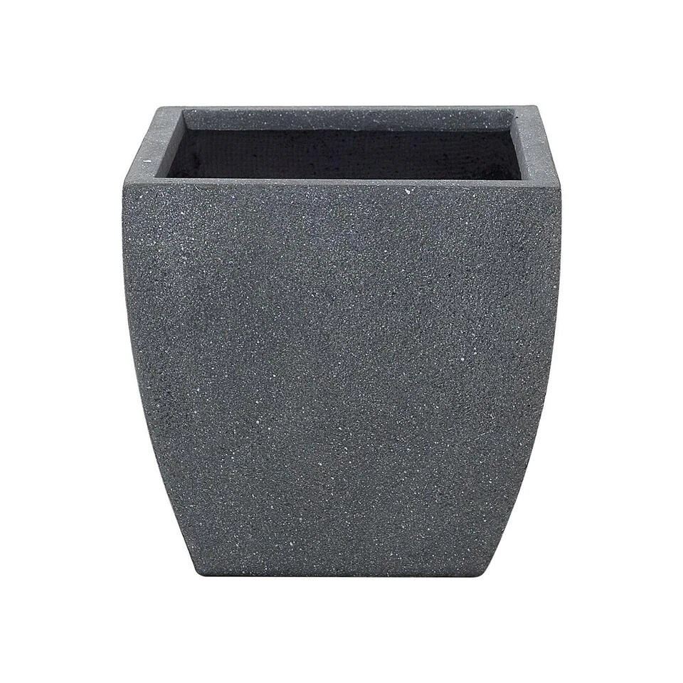 Plantenbak in grijs, klein. Deze vierkante bloembak in prachtig grijs heeft een luxe uitstraling dankzij de licht gebogen vorm. Er is al een praktisch klein gaatje in de onderkant van de bloembak. Op elk moment kan overtollig gietwater uit de pot stromen. Het materiaal bestaat uit een klei-vezelmengsel in combinatie met magnesiumchloride en glasvezel en is daarom robuust, resistent en gemakkelijk te reinigen.