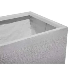 Moderne vierkante bloempot in wit, klein. De hoekige vorm en de eenvoudige, heldere kleur geeft deze bloempot zijn eigentijdse uitstraling en maakt het een perfecte keuze voor moderne tuinen, terrassen of entrees. Er zitten twee praktische gaatjes in de onderkant van de bloembak. Op elk moment kan overtollig gietwater uit de pot stromen. Het materiaal bestaat uit een klei-vezelmengsel in combinatie met magnesiumchloride en glasvezel en is daarom robuust, resistent en gemakkelijk te reinigen.