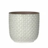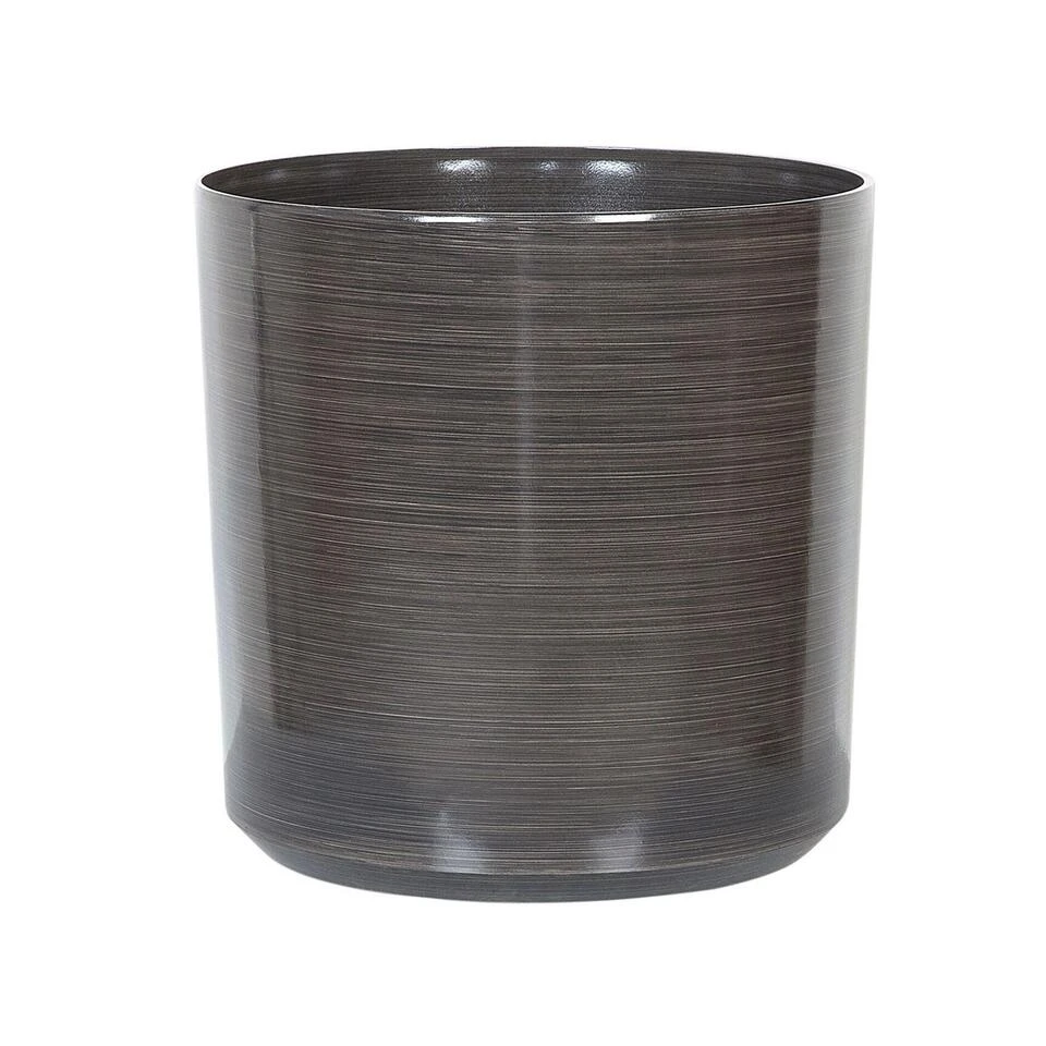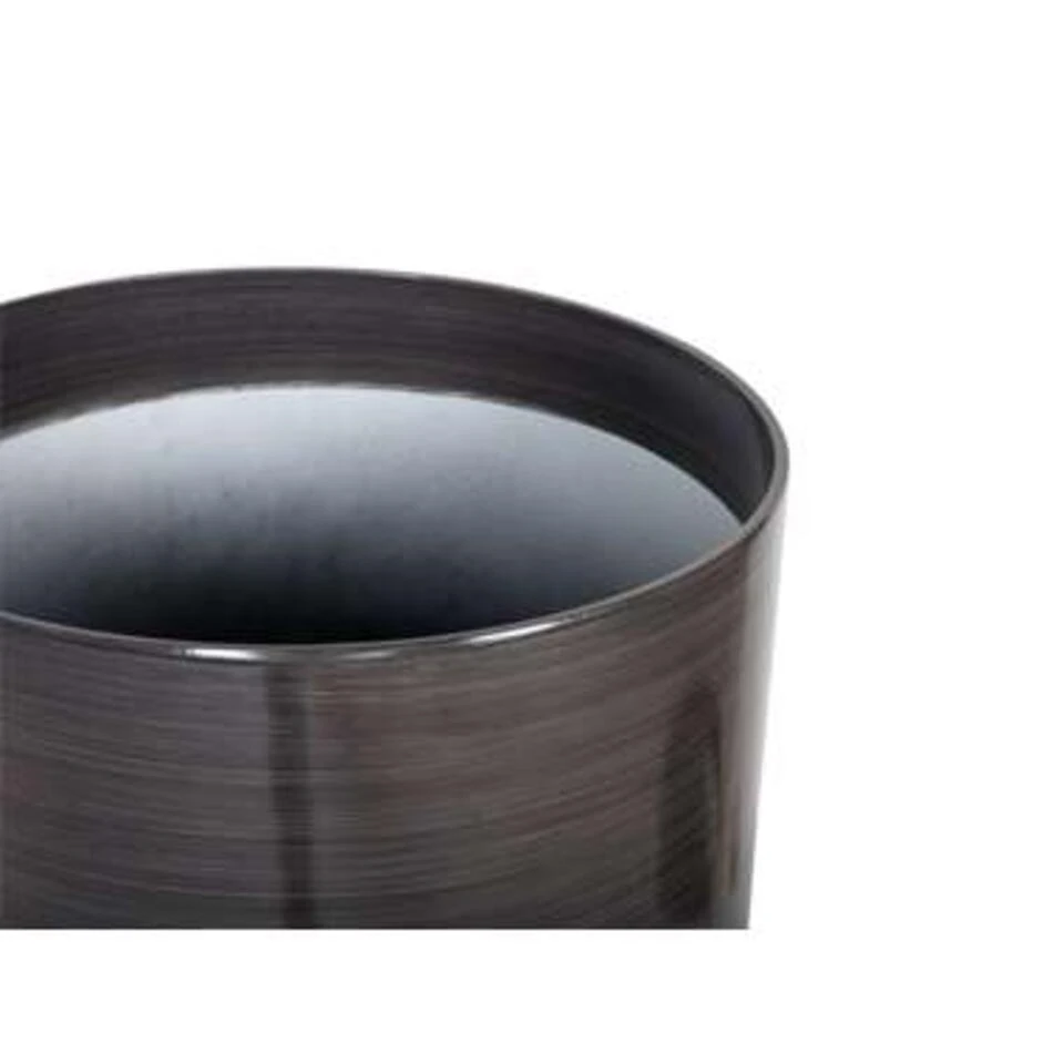 Grijze bloempot in cilindervorm. Het subtiele streeppatroon, de donkere, grijze kleur en de glanzende afwerking maken deze bloempot een blikvanger – zowel thuis als in de tuin. Dankzij de weerbestendige materialen kun je dit accessoire buiten gebruiken, ongeacht het seizoen.