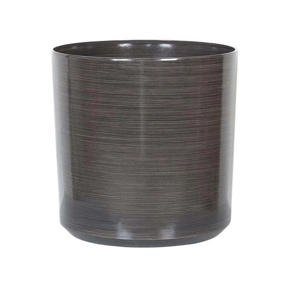 Grijze bloempot in cilindervorm. Het subtiele streeppatroon, de donkere, grijze kleur en de glanzende afwerking maken deze bloempot een blikvanger – zowel thuis als in de tuin. Dankzij de weerbestendige materialen kun je dit accessoire buiten gebruiken, ongeacht het seizoen.