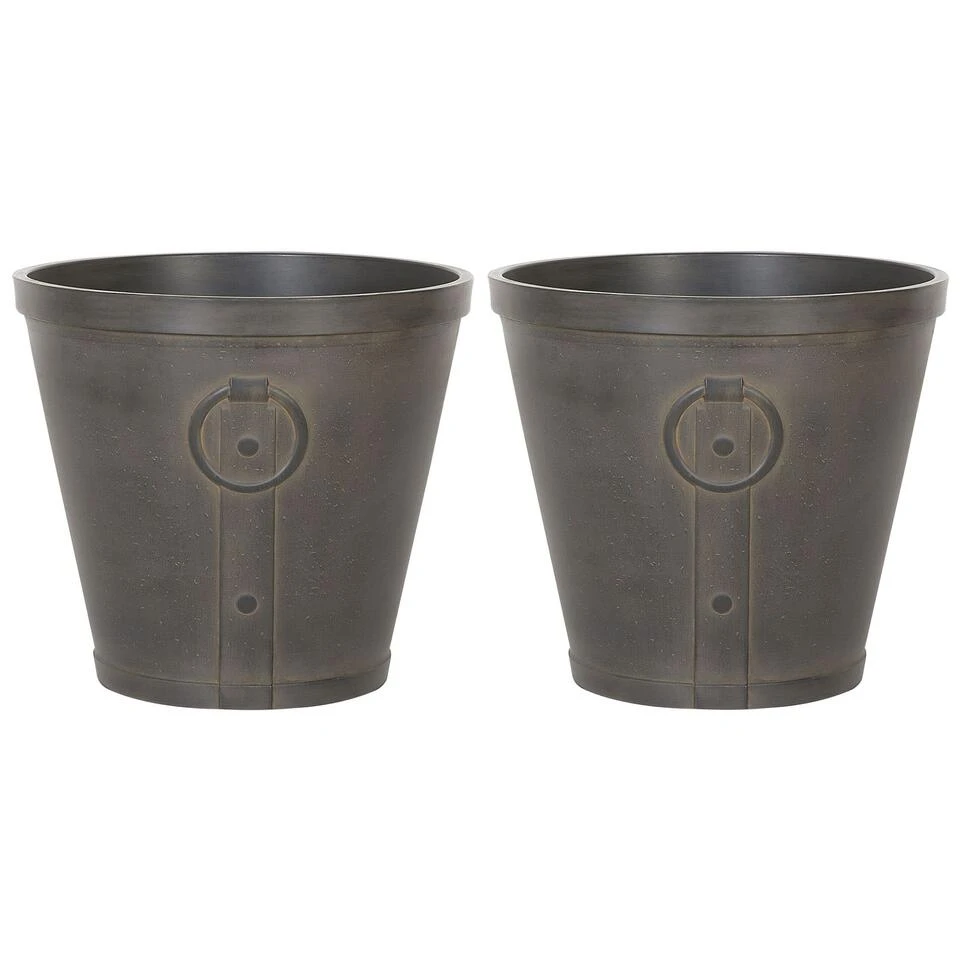 Rustieke bloempot in roestlook. Geef je planten en bloemen een vintage setting en zet ze op de voorgrond op je balkon, terras of tuin. Deze tweedelige set bloempotten met verweerde afwerking voegt zeker een uniek karakter toe aan elke buiten- of binnenruimte, waar je deze ook nodig hebt. Ze zijn gemaakt met een sterk mengsel van stenen en glasvezel is het bestand tegen gematigde weersomstandigheden en schadelijke zonnestralen.
