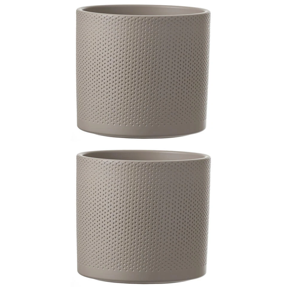 Bloempot In Het Relief Taupe Keramiek Voor Kamerplant H17.5 X D19.5 Cm