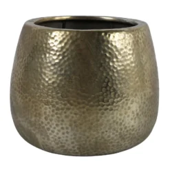 Countryfield Bloemen/plantenpot Oro gemaakt van aardewerk terracotta in een prachtige goud kleurige print. Afmetingen: D22 x H17.5 cm. Bloemen/plantenpot voor binnenplanten. Deze pot heeft een soort gehamerd staal motief aan de stralend glanzende buitenkant. Let op aardewerk vazen zijn niet altijd 100% waterdicht, dus gebruik eventueel een schotel of binnen pot of zak.