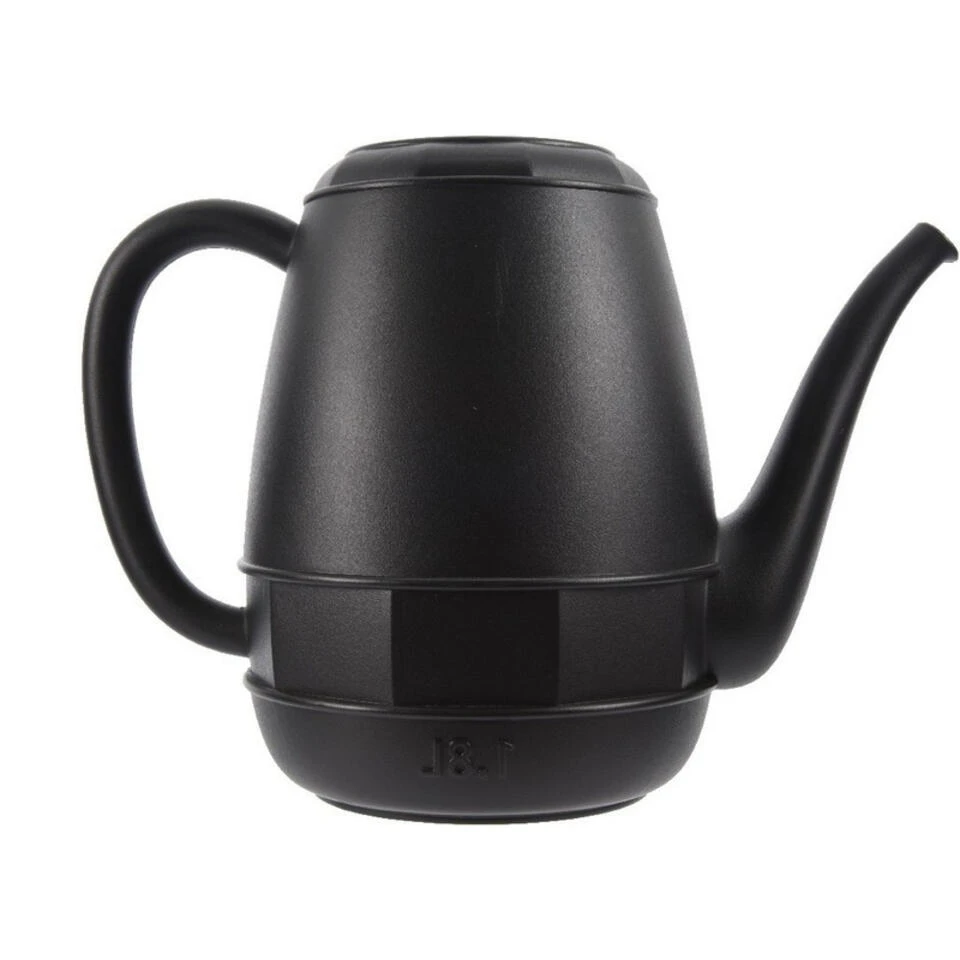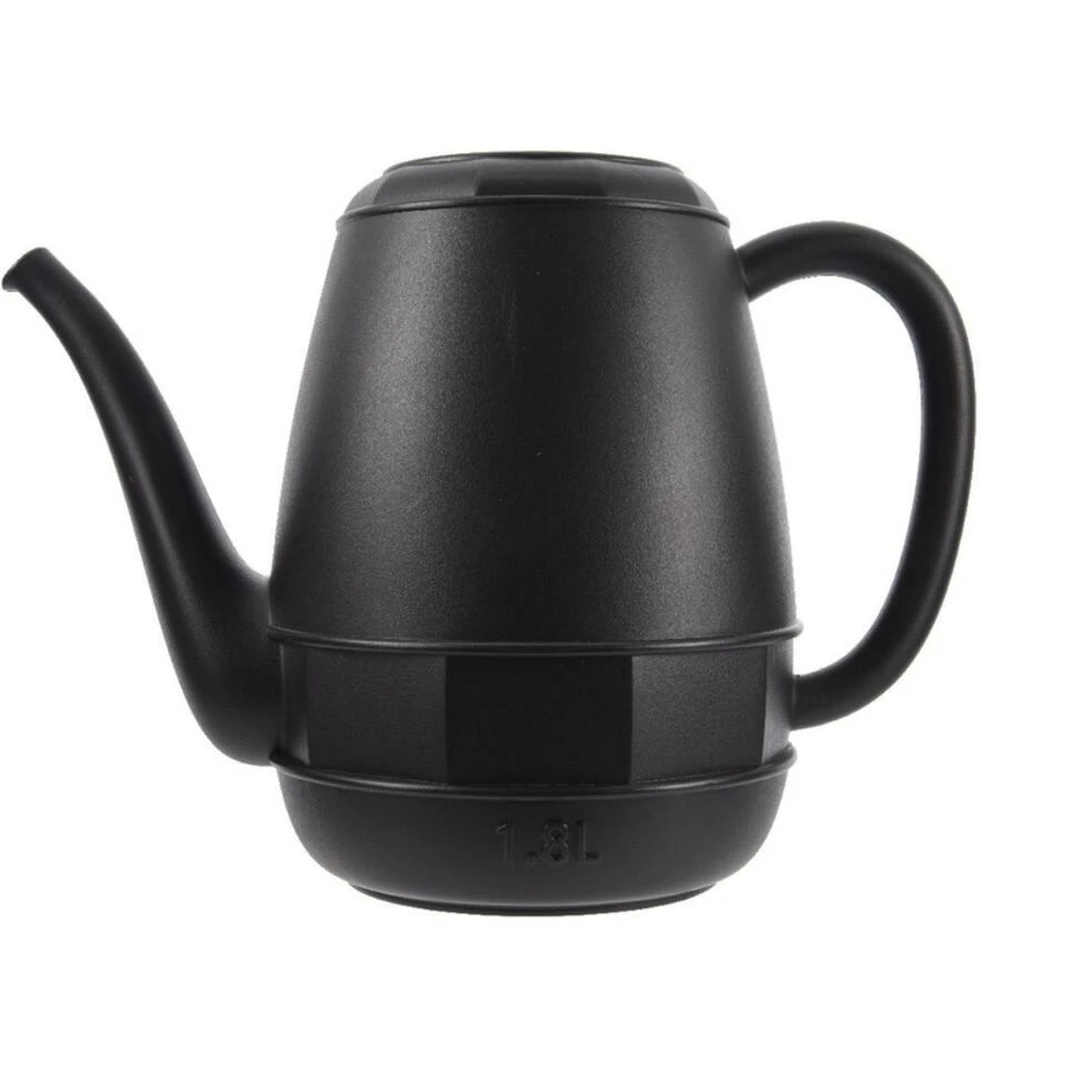 Zwarte kunststof gieter 1,8 liter. Hippe gieter in zwart met vintage uitstraling, die niet alleen functioneel is maar ook leuk staat ter decoratie. Materiaal: kunststof. Formaat: 30 x 20,5 cm. Kleur: zwart (black). Tuinonderhoud/tuinbewatering kleine bloemengieters plantengieters voor binnen en buiten.