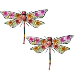 Een grote metalen gekleurde tuinlibelle decoratie. Een leuk alternatief voor de tuinvlinder! U kunt de libelle bevestigen aan de wand/muur of schutting (bevestigingsmateriaal niet inbegrepen). Materiaal: metaal. Formaat libelle: 29 x 47 x 4 cm. Kleur: multikleur. Geschikt voor zowel gebruik binnenshuis als buitenshuis. Kan verkleuren door langdurige blootstelling aan de zon. Metalen libelles dierenbeelden hangdecoraties wanddecoratie/tuinversiering.