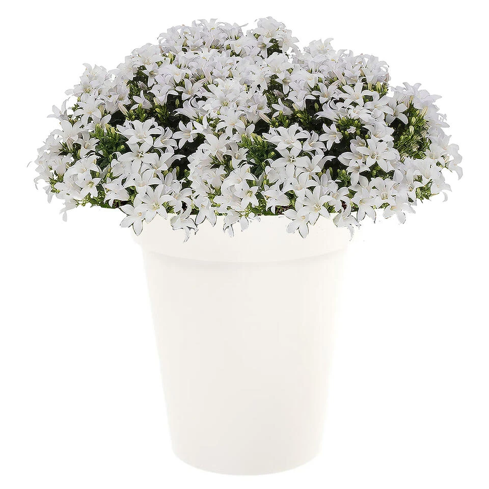 Bloempot Toscane. De plantenpot is geschikt voor binnen- en buitenshuis. Doordat de pot voorgeboord is aan de onderkant kan het water makkelijk weglopen. Afmetingen: diameter 44 cm en hoogte 53 cm. Inhoud: 50 liter. Materiaal: kunststof. Kleur: wit.