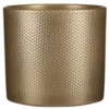 Bloempot/plantenpot schaal van keramiek in het industrieel goud. Bloempotten met een mooi goud relief afwerking aan de buitenkant. Gewicht: 3.8 kilo. Het keramiek heeft een coating zodat het geen water opzuigt. Stijlvolle plantenpotten voor binnen gebruik. Formaat: diameter 34 cm, hoogte 15 cm. Model: Mira.