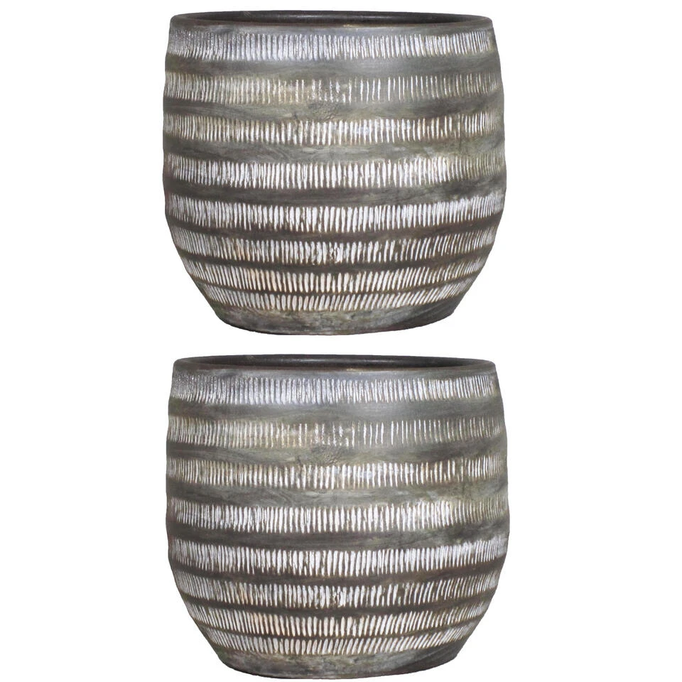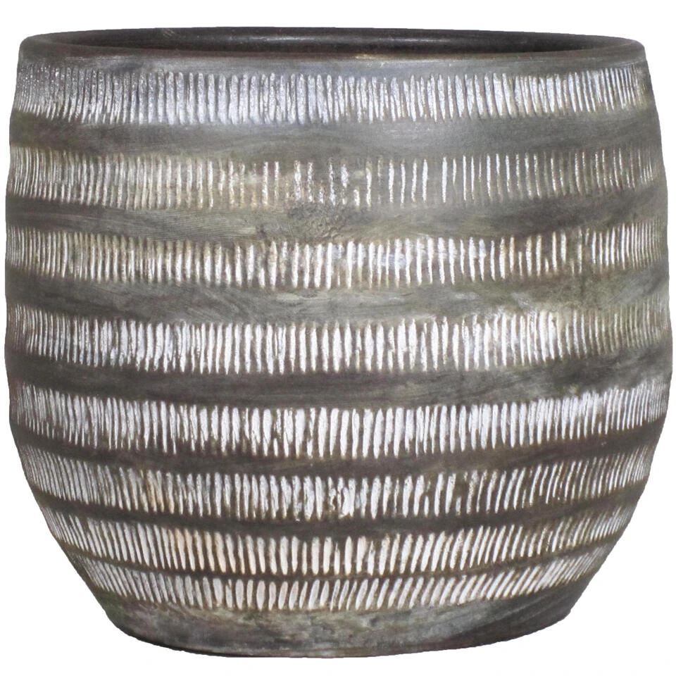 Floran Bloempot Lena – Bruin – Mat – Geribbeld – Keramiek – 20 X 17 Cm