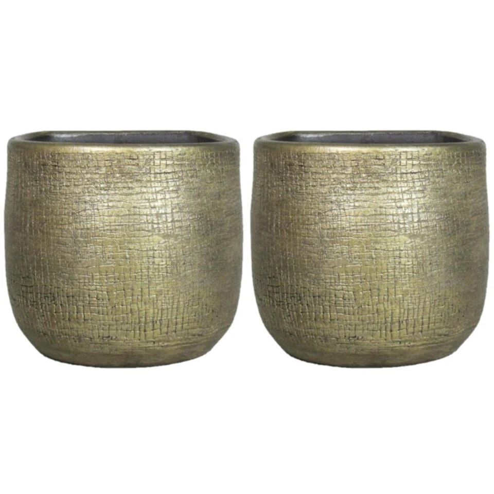 Hangende Bloempot/plantenpot Van Keramiek In Het Industrieel Goud D18 En H16 Cm