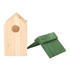 Een houten vogelhuisje/nestkastje met een afneembaar groen dak. Een leuk huisje voor kleine vogeltjes zoals: pimpel/koolmeesjes, musjes en andere kleine vogels rondom het huis. Afmeting: ca. 24 x 18 x 14 cm. Materiaal: hout. Met ophangring aan de achterkant. Diervriendelijke tuindecoratie accessoires vogelhuisje/nestkastje. Een must-have voor natuurliefhebbers.