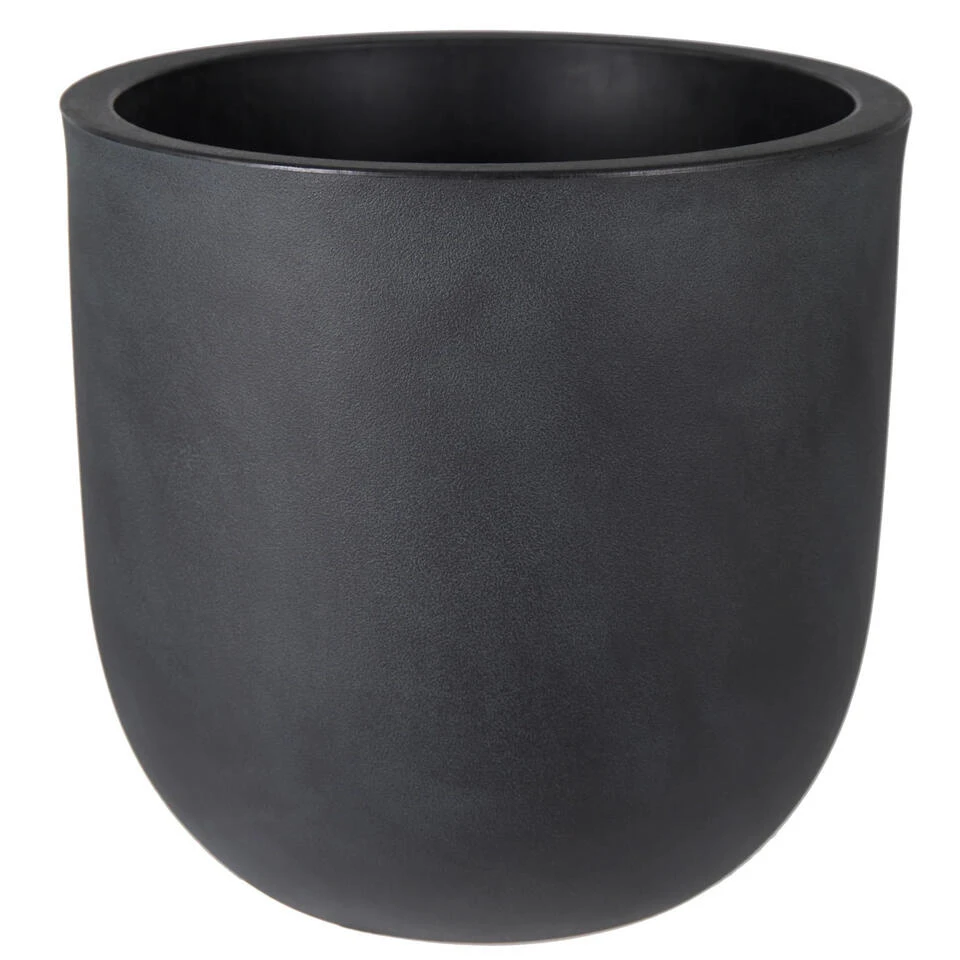 Bloempot/plantenpot uit de Rinca Uovo serie gemaakt van kunststof en speciaal ontworpen voor buitengebruik. De kleur is zwart, wat een moderne en stijlvolle uitstraling geeft. De dubbele wand biedt extra stevigheid en zorgt ervoor dat de pot bestand is tegen weersinvloeden. De kunststof constructie van de plantenpot maakt dat hij licht van gewicht is, waardoor hij gemakkelijk is te verplaatsen. Aan de onderkant zit een rubberen dop om het water gemakkelijk weg te laten lopen. Afmetingen: Diameter 46 cm x Hoogte 43 cm.
