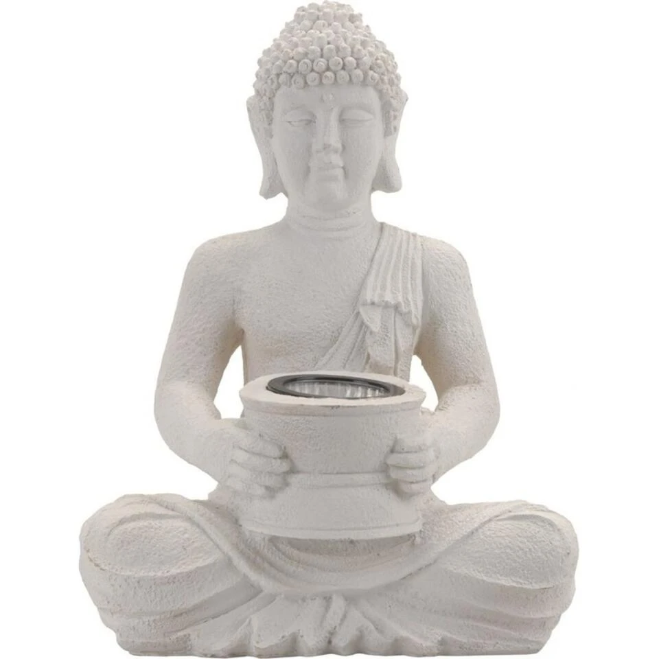Merkloos Tuinbeeld – Boeddha – Incl Verlichting – Solar – Polystone – 31 Cm