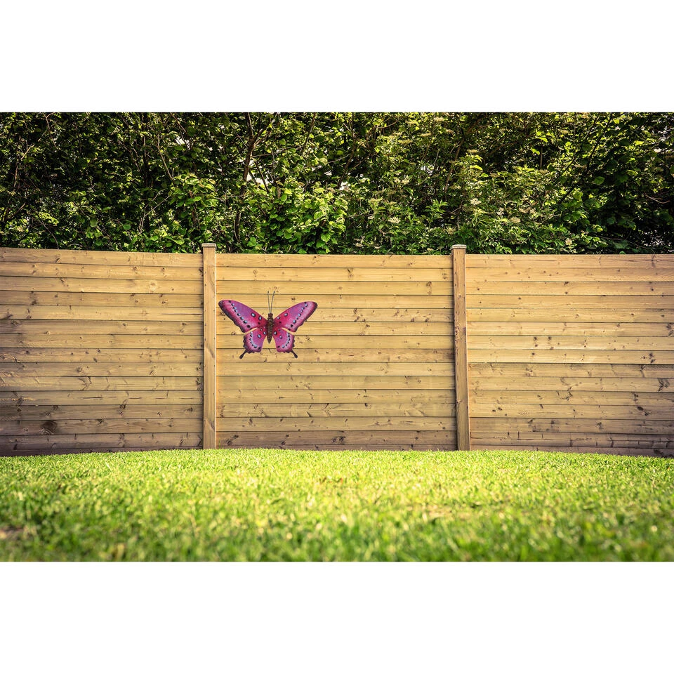 Merkloos Tuindecoratie Muurvlinder – Roze En Lichtblauw – Metaal – 44 Cm