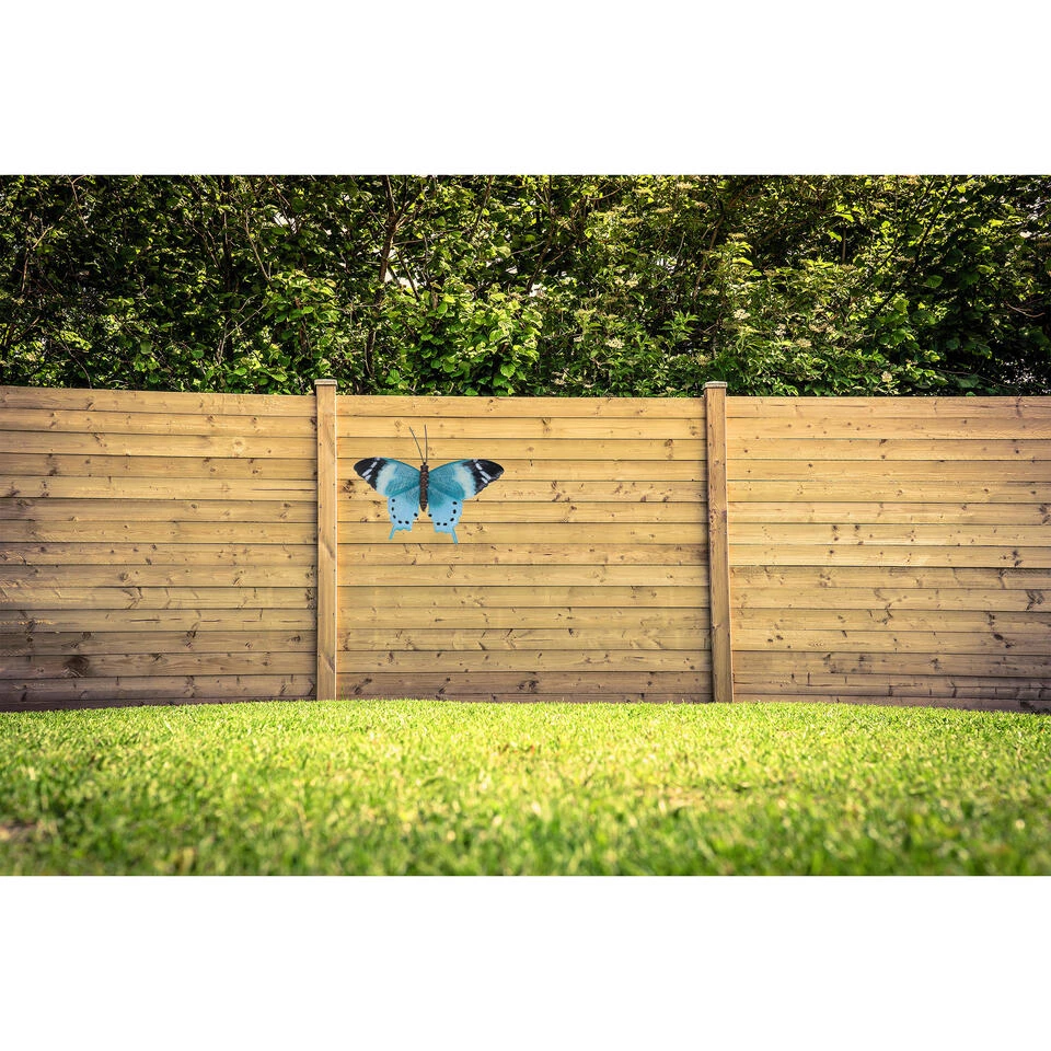 Merkloos Tuindecoratie Vlinder – Lichtblauw En Zwart – Metaal – 35 X 24 Cm