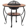 Zwarte vuurschaal op poten 49 cm. Zwarte tuin vuurschaal met los onderstel heeft een formaat van ca. 49,5 x 49,5 x 24,5 cm en is gemaakt van metaal. Door het afwateringsgat onderin de schaal zal er geen regenwater in blijven staan. Wordt geleverd exclusief hout.