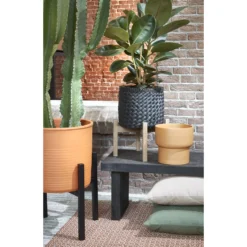 Zet jouw favoriete plant op een voetstuk met de Ascot plantenstandaard van Mica Decorations. De stevige standaard is gemaakt van metaal en uitgevoerd in een zwarte kleur. In combinatie met het strakke design komen elke pot en plant goed tot hun recht. Maak je eigen combinatie en creëer een mooi geheel! Ga voor een statement met één plant, of tover met verschillende standaards een lege hoek om tot een groene oase. De Ascot plantenstandaard is verkrijgbaar in verschillende maten, zodat er voor iedere potmaat een passend model is te vinden. Deze standaard heeft een afmeting van L45,5 x B45,5 x H40 cm en is geschikt voor een bloempot met een diameter van maximaal 40 cm.