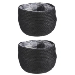 Naturel zwart kleur rotan planten pot mand van gedraaid jute/touw/riet/zeegras van 15 cm hoogte en 18 cm diameter(buitenzijde). Voor de binnenmaat trek je 3 cm af. Mooie rotan jute manden/mandjes voor bloemen, bloemstukjes en planten met plastic aan de binnenkant zodat het water er niet door gaat. De ronde rieten mand heeft geen gaatjes aan de onderkant.