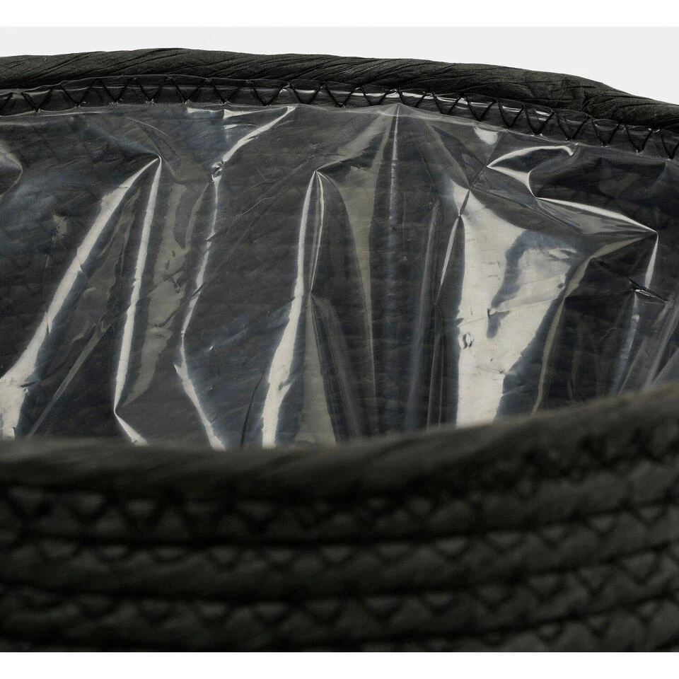 Naturel zwart kleur rotan planten pot mand van gedraaid jute/touw/riet/zeegras van 24 cm hoogte en 26 cm diameter(buitenzijde). Voor de binnenmaat trek je 3 cm af. Mooie rotan jute manden/mandjes voor bloemen, bloemstukjes en planten met plastic aan de binnenkant zodat het water er niet door gaat. De ronde rieten mand heeft geen gaatjes aan de onderkant.