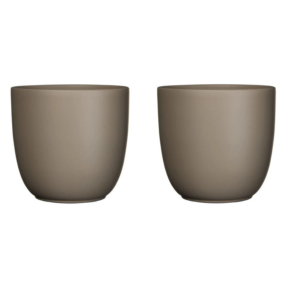 Bloempot in de kleur mat taupe bruin in een mooi mat motief keramiek voor een kamerplant H16 x D17 cm. Deze ronde bloempot uit de Tusca home basics serie past altijd goed in elke huis/interieur. Gemaakt van terracotta/keramiek. Diameter: 17 cm. Hoogte: 16 cm.
