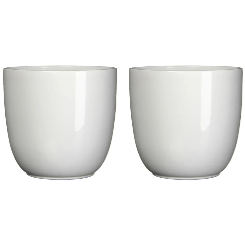 Bloempot in de kleur wit in een mooi glans motief keramiek voor een kamerplant H14 x D14.5 cm. Deze ronde bloempot uit de Tusca home basics serie past altijd goed in elke huis/interieur. Gemaakt van terracotta/keramiek. Diameter: 14.5 cm. Hoogte: 14 cm.