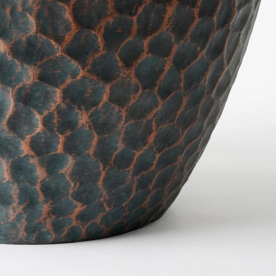 Deze Bravo bloempot van Mica Decorations heeft alle kenmerken van een stenen bloempot, op één ding na: het gewicht. De pot is namelijk gemaakt van lichtgewicht kunststof. De pot voor buiten heeft een kleur die lijkt op geoxideerd groen en valt op door de stoere, gehamerde structuur. Het voordeel is dat hij zowel binnen als buiten te gebruiken is. De pot is namelijk UV- en vorstbestendig. Leuk als stoere toevoeging voor in de woonkamer of voor buiten op het terras! Voor buitengebruik is het wel verstandig om het aangegeven drainage gat in de bodem te doorboren. Dit zorgt voor een goede afwatering. De Bravo bloempotten zijn verkrijgbaar in verschillende kleuren en maten. Deze groene bloempot is 40 cm hoog en heeft een diameter van 45 cm.