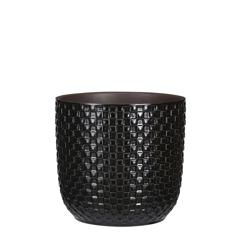 Bloempot Daan uit de collectie van Mica Decorations fleurt je interieur in een mum van tijd op. De keramieken pot is namelijk speels afgewerkt met een patroon van kleine vierkantjes. Erg mooi in combinatie met de subtiele glans! De zwarte kleur geeft hier een stoere draai aan. Welke plant je er ook in zet; in deze pot komt alles goed tot zijn recht. De Daan potten zijn verkrijgbaar in verschillende kleuren en maten. Leuk om met elkaar te combineren! Deze bloempot is zwart en heeft een afmeting van H17,5 x Ø19 cm.