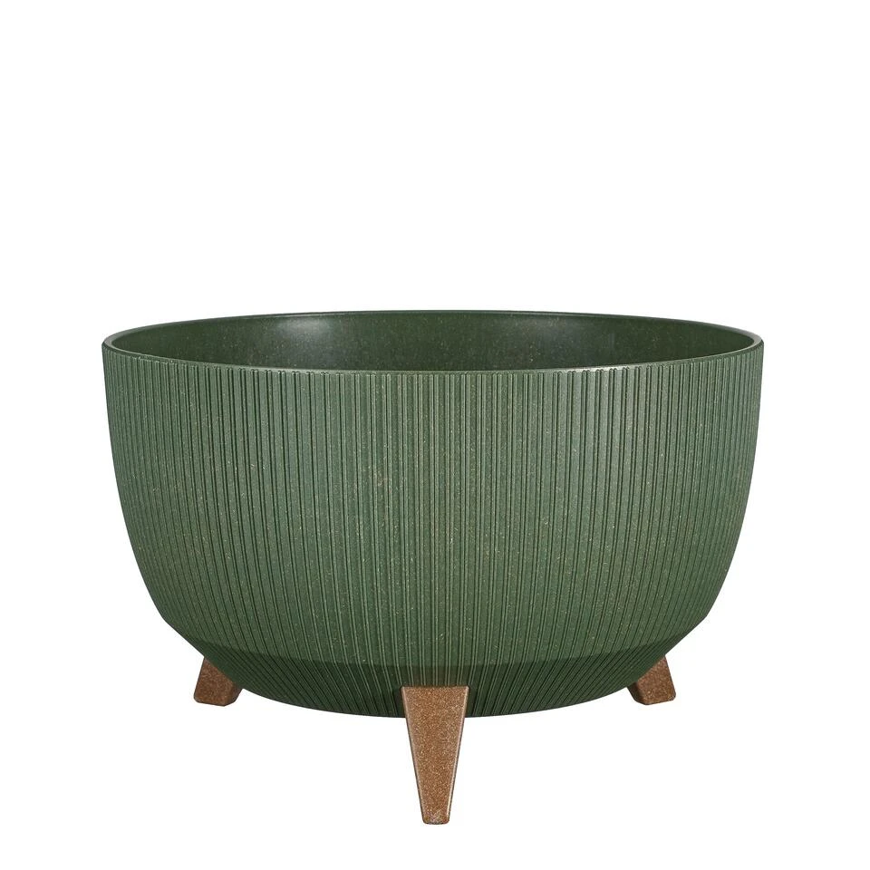 Geef jouw favoriete plant een prominente plek met deze Doppio schaal op poten van Mica Decorations. De groene pot bestaat voor 40% uit een mix van koffieschillen van restafval met gerecycled FSC®-gecertificeerd hout en voor 60% uit polypropyleen. De drie bruine pootjes zijn voor 40% gemaakt van gerecycled FSC®-gecertificeerd hout en 60% polypropyleen. De bloempot is daarnaast lichtgewicht, UV- en vorstbestendig. Door de uitneembare plug ontstaat er een drainagegat waardoor de pot een goede afwatering heeft. De pot is hierdoor geschikt voor zowel binnen als buiten. Erg mooi in combinatie met een kleurrijke plant. De Doppio bloempotten zijn verkrijgbaar in verschillende afmetingen en kleuren. Deze groene bloempot op pootjes heeft een afmeting van H20,5 x Ø40 cm.