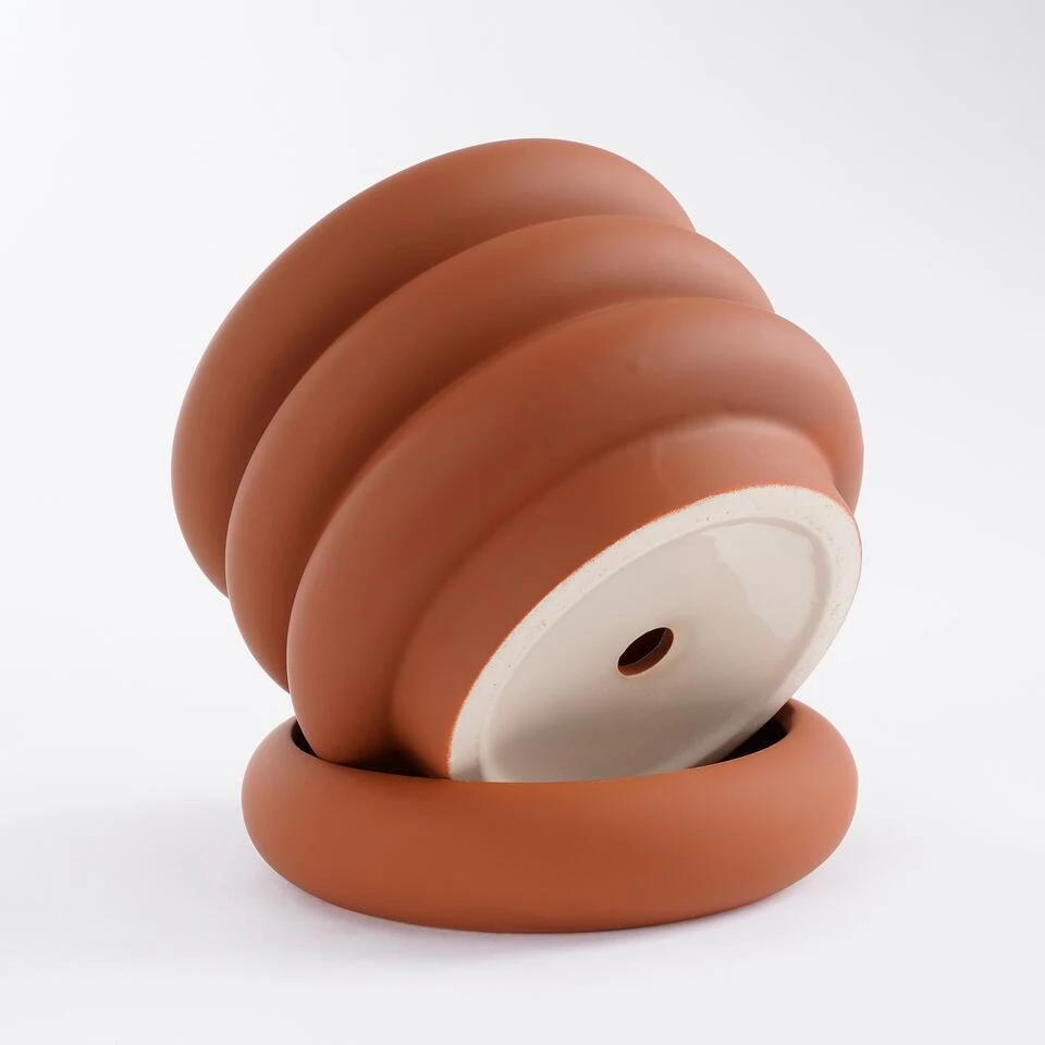 Moderne bloempotten met een bijzonder design: de Ilse potten uit de collectie van Mica Decorations zijn een mooie aanvulling op elk interieur! De potten vallen op door het hoogwaardige keramiek in een moderne bruine kleur. In de onderste ring zit een schotel geïntegreerd die voor het oog opgaat in de pot en het overtollige water opvangt. Praktisch én stijlvol! De afmetingen zijn H16 x Ø18,5 cm.