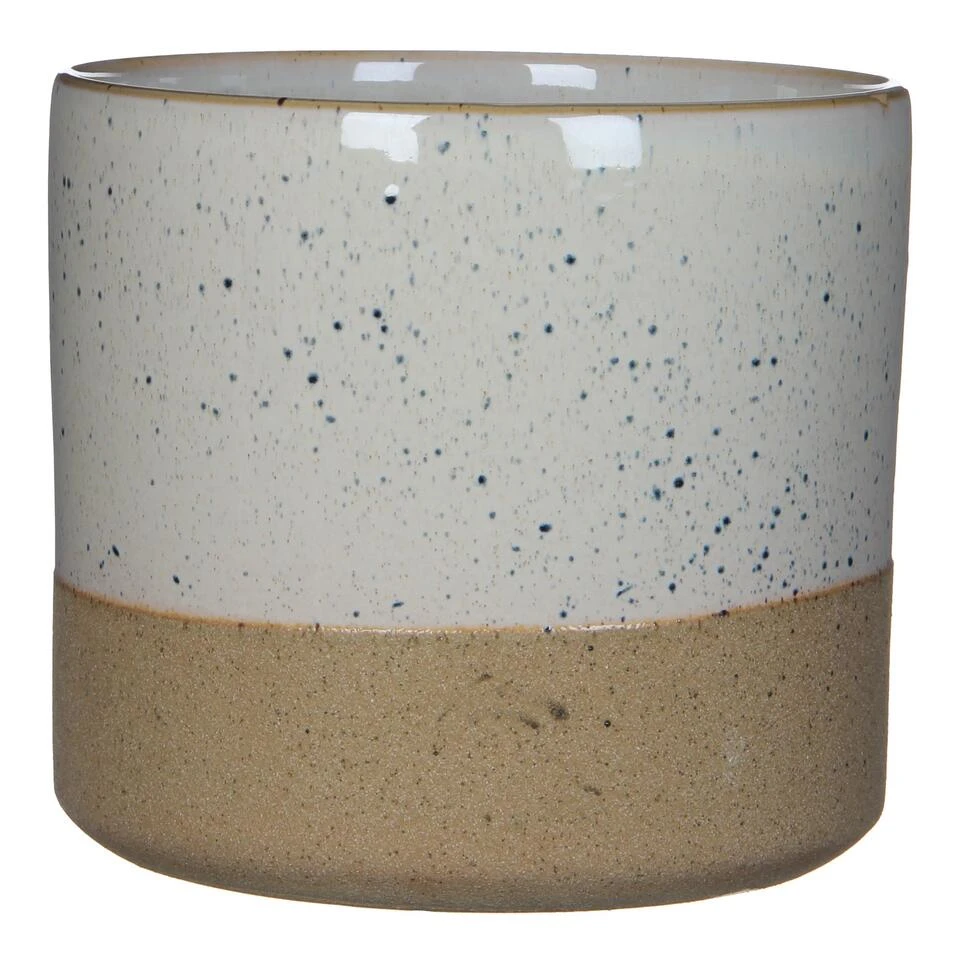 Voor deze Lago bloempot van Mica Decorations heb je eigenlijk geen bloem of plant meer nodig. Hij is al zo mooi van zichzelf! De pot is gemaakt van keramiek en heeft een bijzondere glazuurlaag. De basis is wit met een mooi kleurverloop naar een warme, bruine rand. Over het gehele oppervlak zitten donkere spikkels die zorgen voor een unieke, authentieke look. Erg mooi! Gelukkig past de pot door het neutrale kleurgebruik in elk interieur. Heb jij al een plekje gevonden? De Lago potten zijn verkrijgbaar in verschillende kleuren en maten. Deze bloempot is wit en heeft een afmeting van H18 x Ø20,5 cm.
