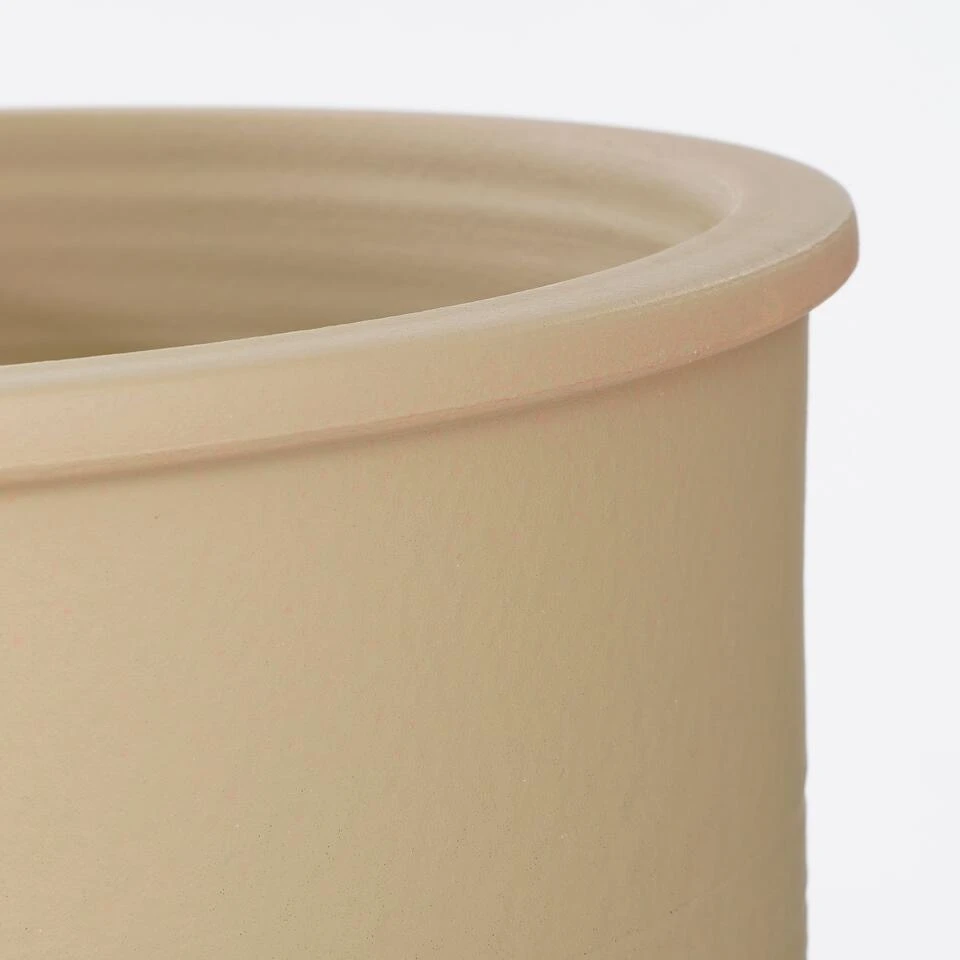 Bloempot Momo van Mica Decorations heeft een aardse basis waar het design een industriële draai aan geeft. Met de verticale ribbels doet de vormgeving namelijk denken aan een blik. Erg modern! De taupe kleur zorgt hierbij voor een neutrale uitstraling die in elk interieur past. De pot wordt gemaakt van terracotta klei in Portugal en helemaal met de hand afgewerkt. Hierdoor heeft elke pot zijn eigen, unieke uitstraling. De Momo bloempotten zijn verkrijgbaar in verschillende kleuren en maten. Dit taupe kleurige model heeft een afmeting van H25 x Ø28 cm.