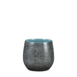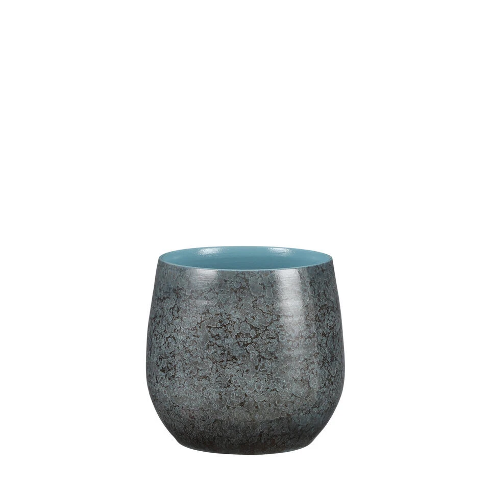 Plantenpot/bloempot van terracotta in de kleur blauw shadow met diameter 24 cm en hoogte 22 cm. Stijlvolle bloempotten voor binnen gebruik met een metallic shadow finish. Serie: Oliver. Deze terracotta pot is volledig met de hand gemaakt door traditionele Portugese pottenbakkers. Door de aandacht voor elke pot is elk stuk uniek. Bovendien geeft de bijzondere afwerking het een metaalachtig uiterlijk.