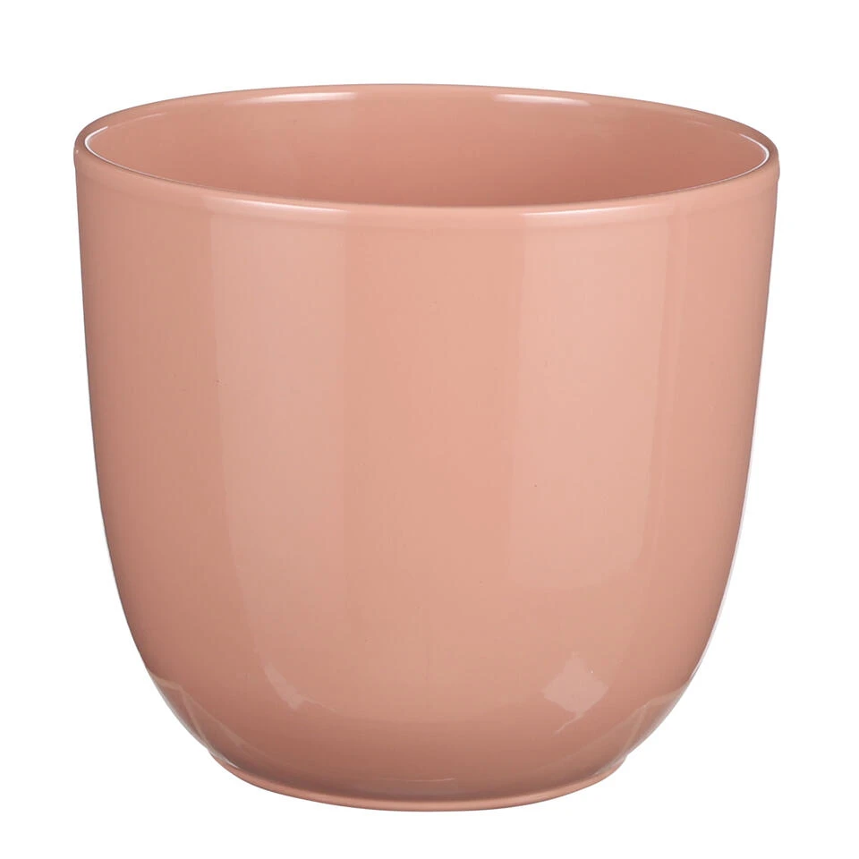 Plantenpot/bloempot van keramiek in de kleur Lichtroze in strakke glanzende uitvoering. Diameter 19.5 cm en hoogte 18.5 cm. Mooie bloempotten voor binnen gebruik. Serie: Tusca. De bloempot met een prachtige glans finish aan de buitenzijde is van Duits keramiek. Tip: zet een schotel onder de pot, of plaats een binnenpot/hoes om eventueel lekken tegen te gaan. Potten van gebakken steen zijn niet altijd 100% waterdicht.