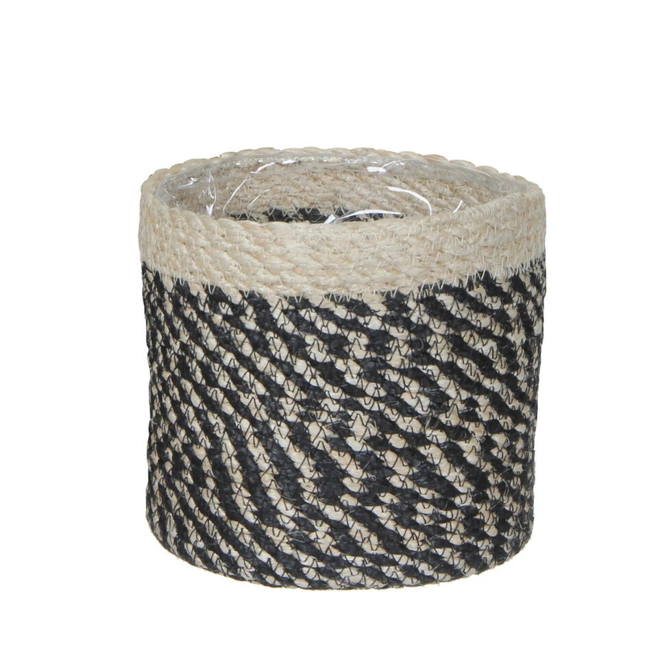 Mica Decorations Plantenmand – Naturel Met Zwart – Rotan – 12 X 12 Cm